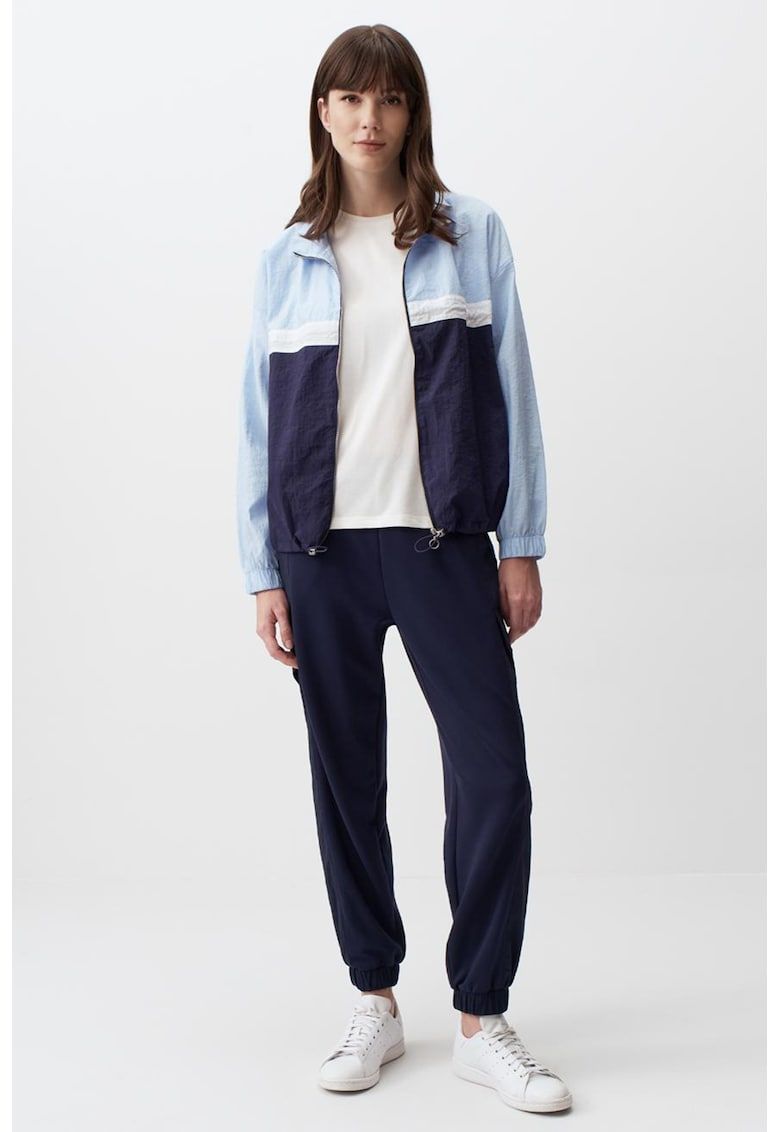 Caracteristici Tip produs: bluza de trening Culoare: albastru deschis - bleumarin Imprimeu: uni Croiala: regular fit Sistem inchidere: fermoar Material: sintetic Lungime maneca: maneca lunga Detalii: aspect colorblock Compozitie Exterior: 100% poliamida