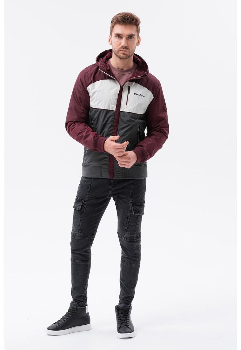 geaca cu fermoar si model colorblock