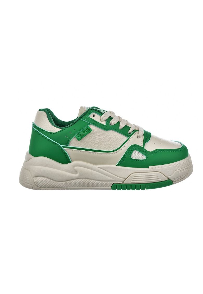 Caracteristici Culoare: verde - bej deschis Varf: rotund Tip talpa: wedge Material: piele ecologica Stil: casual Sistem inchidere: siret Compozitie Partea superioara: alte materiale - material textil Material interior: alte materiale Material talpa: alte materiale